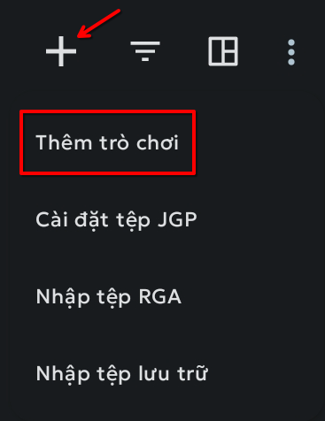 - Mở ứng dụng JoiPlay, nhấn vào dấu cộng ở góc trên bên phải và chọn Thêm trò chơi.